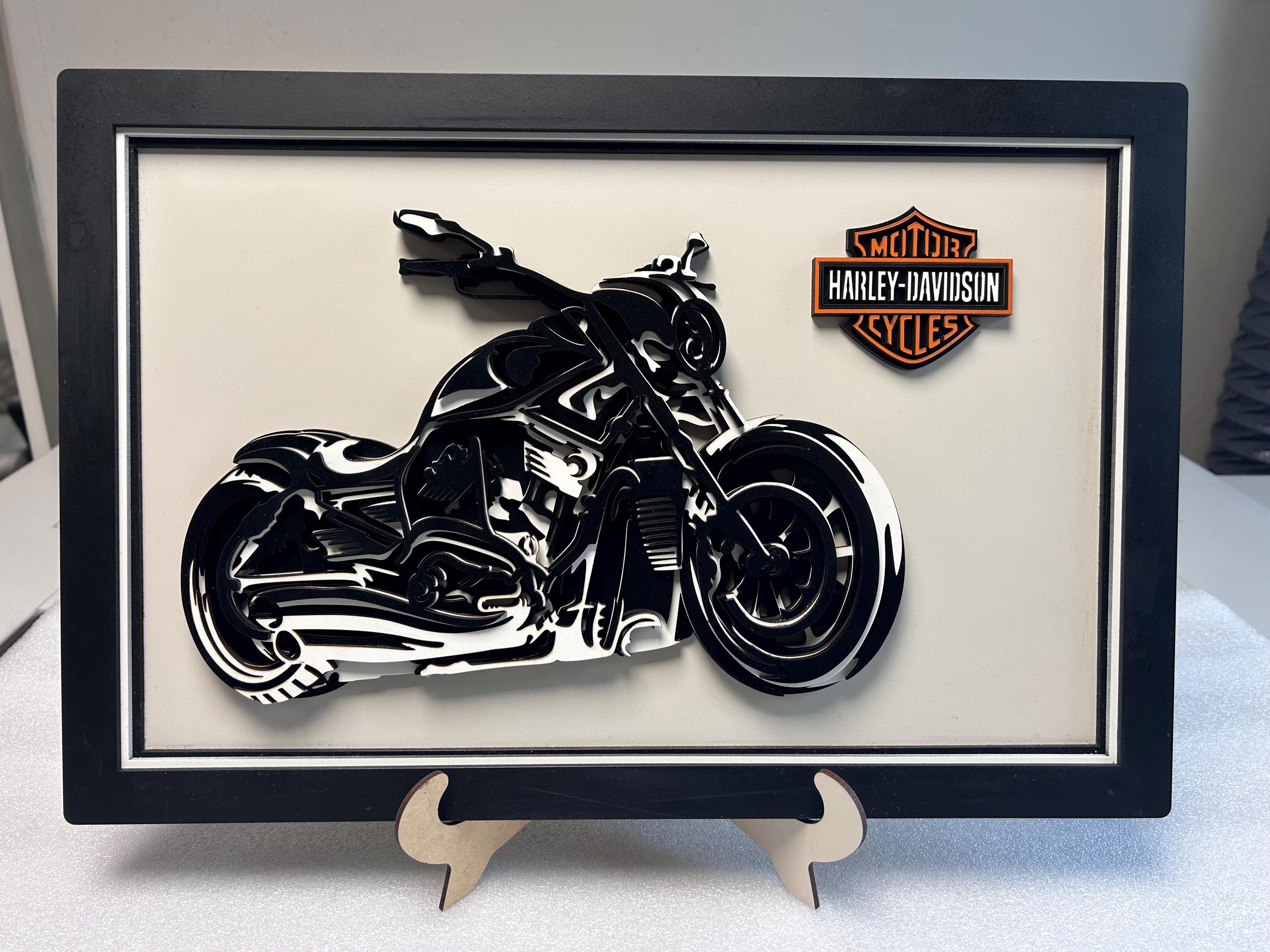 Whether you’re decorating your garage, man cave, motorcycle shop, or just looking for the perfect gift for a biker, this multi-layered motorcycle decor is sure to impress!