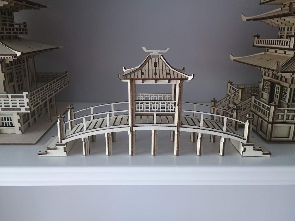 Add a touch of traditional Asian elegance to your tabletop scenery or diorama with this bridge and pagoda laser cut design. Optimized for 28mm–32mm scale miniatures, it suits a wide range of historical, fantasy, or samurai-inspired settings. The curved bridge, ornate railings, and pagoda roof create a striking focal point on any gaming table or display. Precision-designed for seamless assembly, this model brings authenticity and depth to your setup—be it a peaceful village crossing, temple garden, or scenic highlight in your collection.
